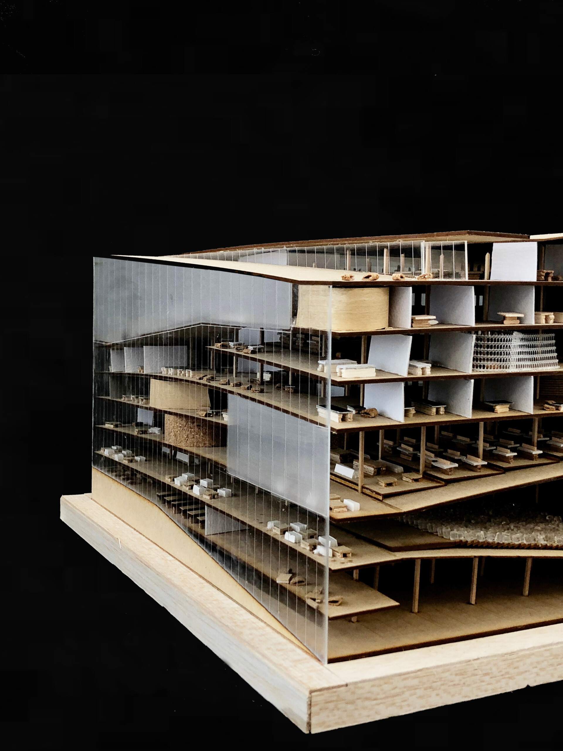 Design Studio IV was primarily dedicated to addressing the prevalent challenges associated with deep plan projects, specifically focusing on issues related to lighting and ventilation. Under the guidance of Juan Frigerio, an esteemed architect and partner at Norman + Partners, our project proposed an innovative solution through the integration of a glass enclosure with varying opacities. This approach, combined with strategically placed interior ramps, not only cultivates distinctive spatial experiences but also eliminates the necessity for traditional partition walls. By optimizing the distribution of light throughout the plan, our proposal ensures enhanced environmental quality and spatial flexibility, effectively resolving the constraints typically encountered in deep plan designs.