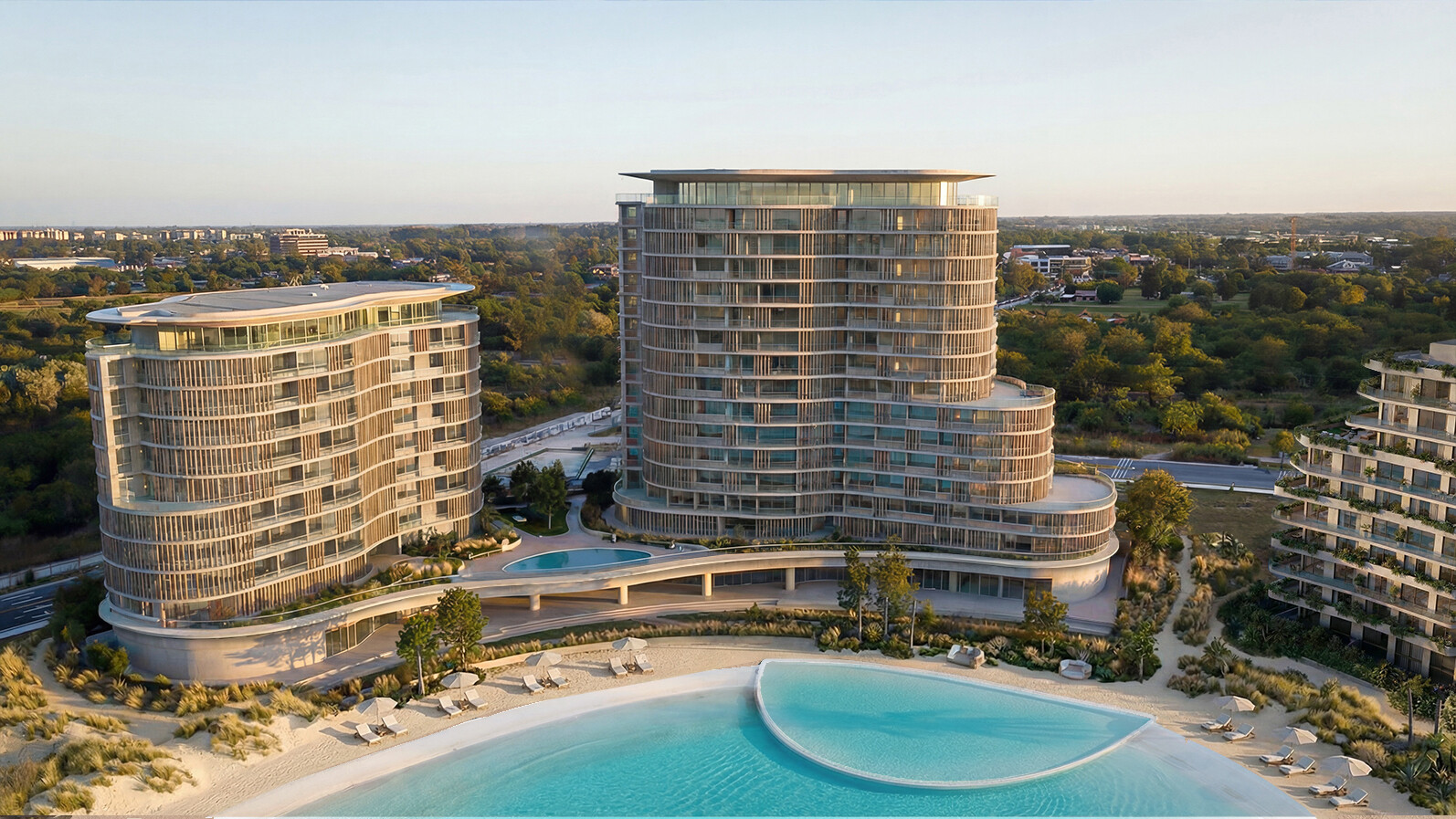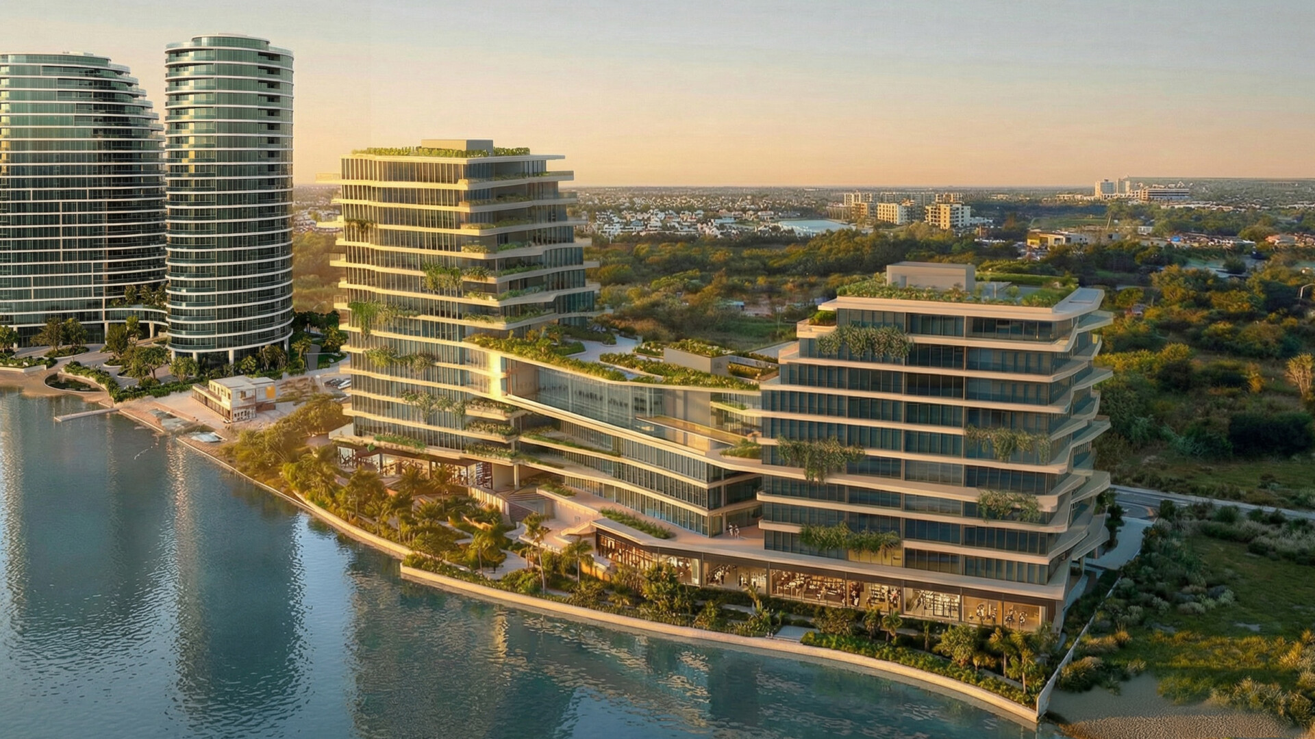 Magrit Studio produced an extensive set of 15 high-resolution digital renderings, including aerial perspectives and targeted, sales-oriented views tailored to the marketing narrative of each building. The images were developed to support investor and buyer communications, pre-launch and launch collateral, and professional presentation materials, while also clarifying massing, façade articulation, material intent, and atmosphere at both the urban and building scale. Conceived as more than promotional imagery, the work provided a consistent visual framework that aligned design decisions across the complex and strengthened the project’s identity within the competitive real-estate context.